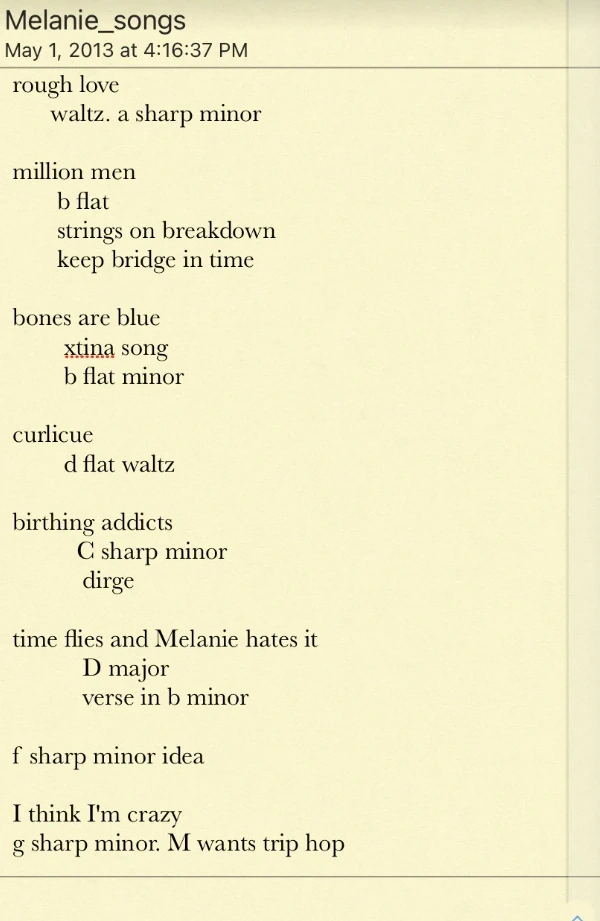 Según documentos privados obtenidos a través de Doveman, Melanie odiaba la canción, [1] y originalmente fue acreditada como "Time" en una versión desconocida, posiblemente en la primera y en la primera sesión de estudio. Probablemente fue eliminado del EP antes que todo el proyecto, ya que Melanie nunca lo interpretó en vivo ni lo reconoció públicamente.